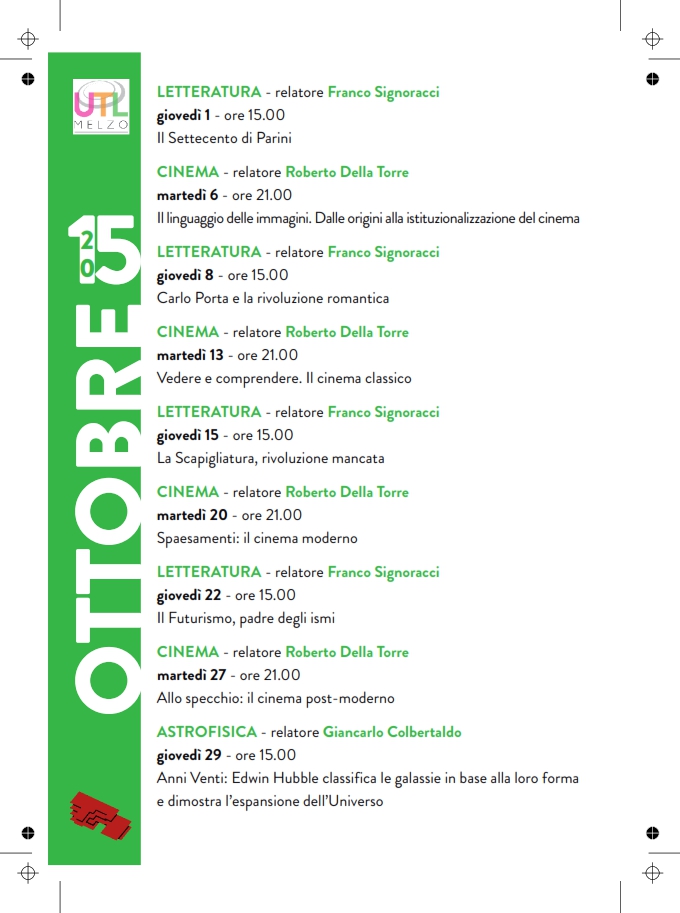 Inaugurata la collaborazione con l’Università del Tempo Libero di Melzo con un corso sulla storia e l’evoluzione del linguaggio cinematografico.