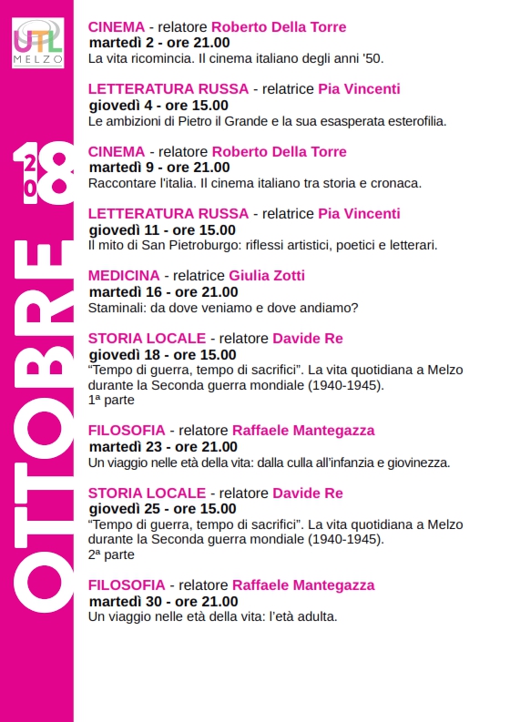 Continua la collaborazione con l’Università del Tempo Libero di Melzo con due appuntamento di storia del cinema italiano.