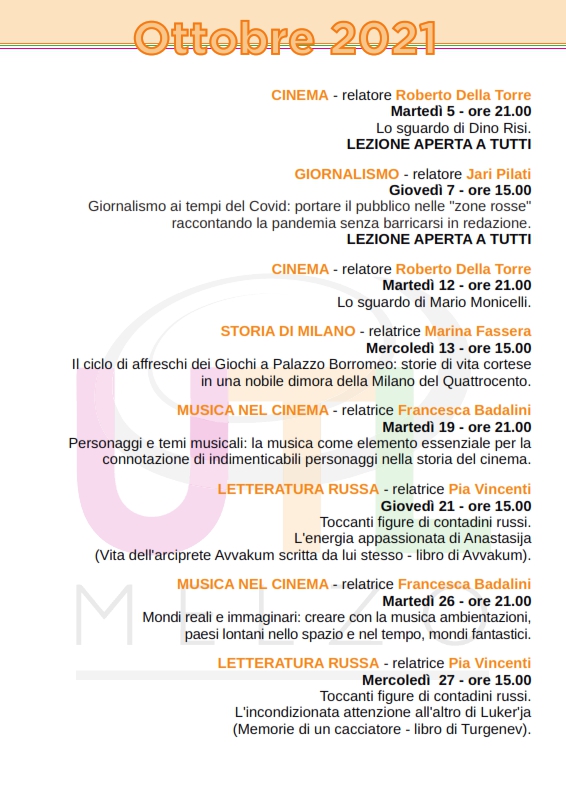 Continua la collaborazione con l’Università del Tempo Libero di Melzo con due appuntamenti sul cinema di Dino Risi e Mario Monicelli.