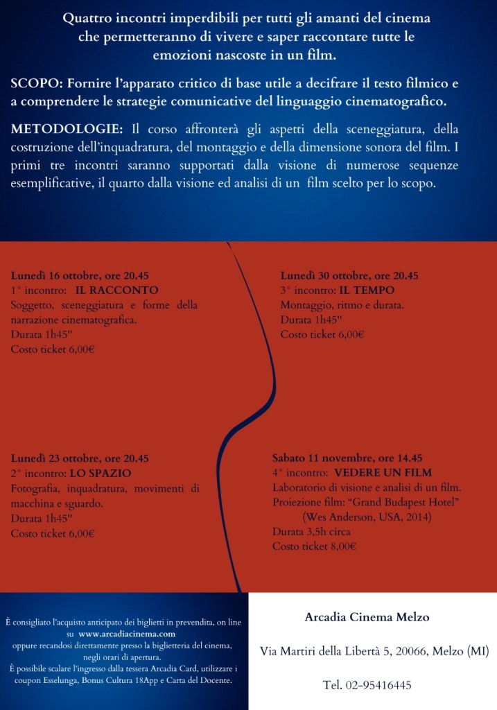 In collaborazione con UTL Melzo e Cinema Arcadia terrò un corso di introduzione al linguaggio del cinema e analisi del film.